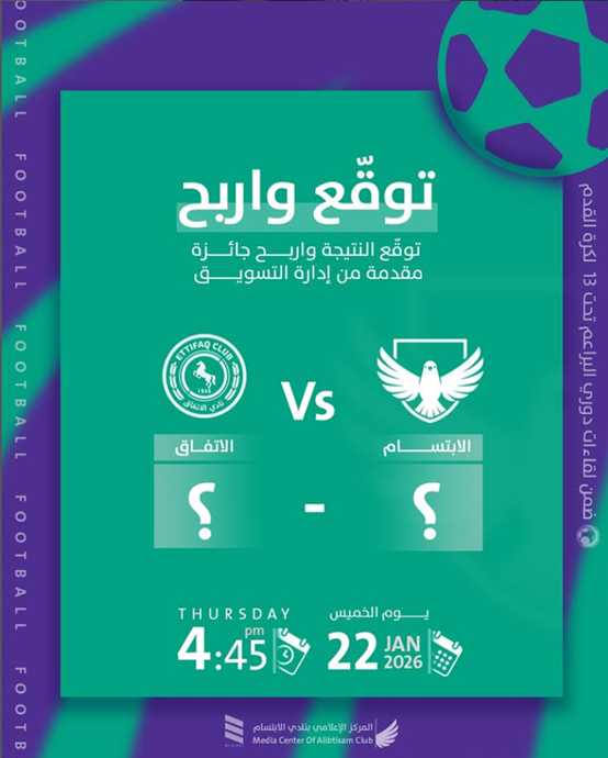تأهل فريق نادي الإبتسام للعبة كرة اليد لدرجة الشباب الى تصفيات المنطقة الشرقية عقب تفوقه على شقيقه فريق الهداية بنتيجة 29-18 في اللقاء الذي جمع الفريقين على صالة نادي الخويلدية ضمن اطار منافسات الجولة الرابعة من دوري وزارة الرياضة بمحافظة القطيف .