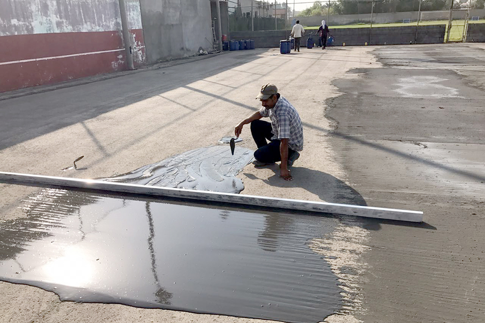 البدء في تنفيذ وتركيب السطح المطاطي لملاعب التنس بنادي الابتسام